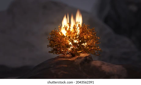 अरण्यात मेंढ्या चारत असताना, मोशेने एक जळणारे झुडूप पाहिले जे जळाले नाही. काय होत आहे हे पाहण्यासाठी तो जवळ गेला असता, त्या झुडपातून एक वाणी झाली आणि मोशेला समजले की देव स्वतः त्याच्याशी बोलत होता.